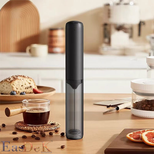 Sleek, Modern Design: Crafted in a sophisticated matte black finish with a transparent housing to view the mechanism in action. It’s not just a tool; it's a stylish addition to your kitchen counter or coffee station.